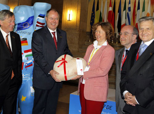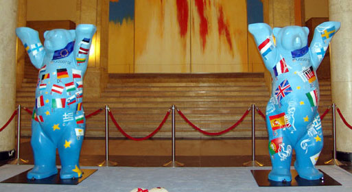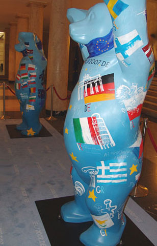 Anlässlich des Berliner ECOFIN -Treffens im April 2007 unter Vorsitz von Peer Steinbrück wurden diese zwei Bären gestaltet. Ein Bär wurde von allen EU-Finanzministern signiert und anschließend der Stiftung KinderHerz Deutschland für ihre gemeinnützigen Zwecke überreicht. Ziel der Stiftung ist es, ein flächendeckendes Versorgungsnetz für herzkranke Kinder in ganz Deutschland zu entwickeln. Die zweite Skulptur steht zur Zeit vor dem Hauptgeäude des Bundesfinanzministeriums in Berlin.