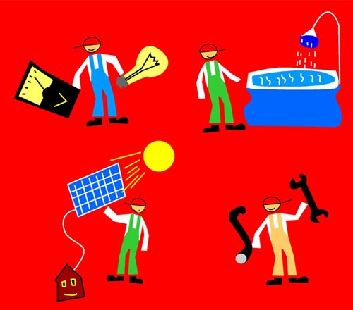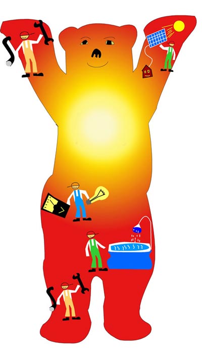 Entwürfe für Buddy Bär als Handwerkerbetrieb.